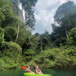 Der Khao Sok Nationalpark im Süden Thailands ist ein wunderbares Reiseziel für Familien, die Natur intensiv und dennoch entspannt erleben möchten. Wir haben uns im kleinen Dorf direkt am Parkeingang niedergelassen, sind von dort aus zu Fuß in den Dschungel gestartet und haben einen Tagesausflug zum berühmten Cheow Lan Lake gemacht. In diesem Artikel nehmen wir Euch mit zu unseren Erfahrungen im Khao Sok Nationalpark, erzählen vom besonderen Dorfleben, von Wanderungen mit Kindern und von einem eindrucksvollen Tag auf dem See.