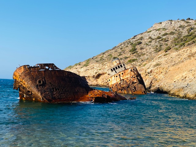 Eine weitere Sehenswürdigkeit des Filmklassikers „Im Rausch der Tiefe“ ist das Schiffswrack Olympia. Es liegt imposant in einer Bucht. Ein kleiner Pfad führte uns zum Wrack, das mittlerweile auseinandergebrochen ist. Das Schiffswrack ist ein beliebtes Fotomotiv und ein beliebter Ort für Taucher.