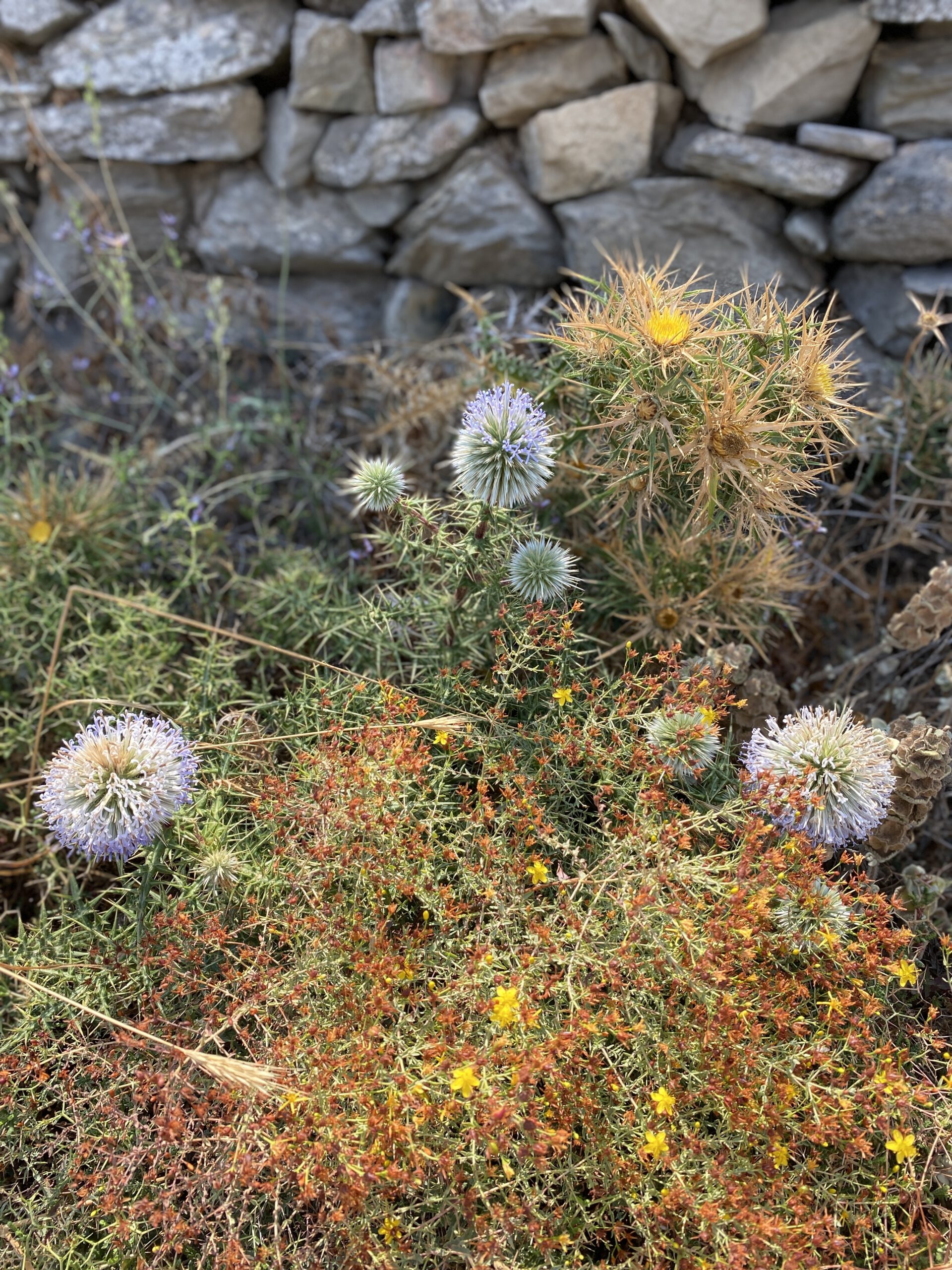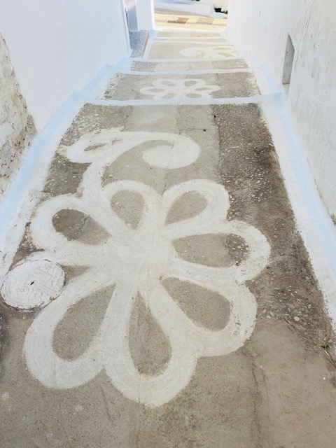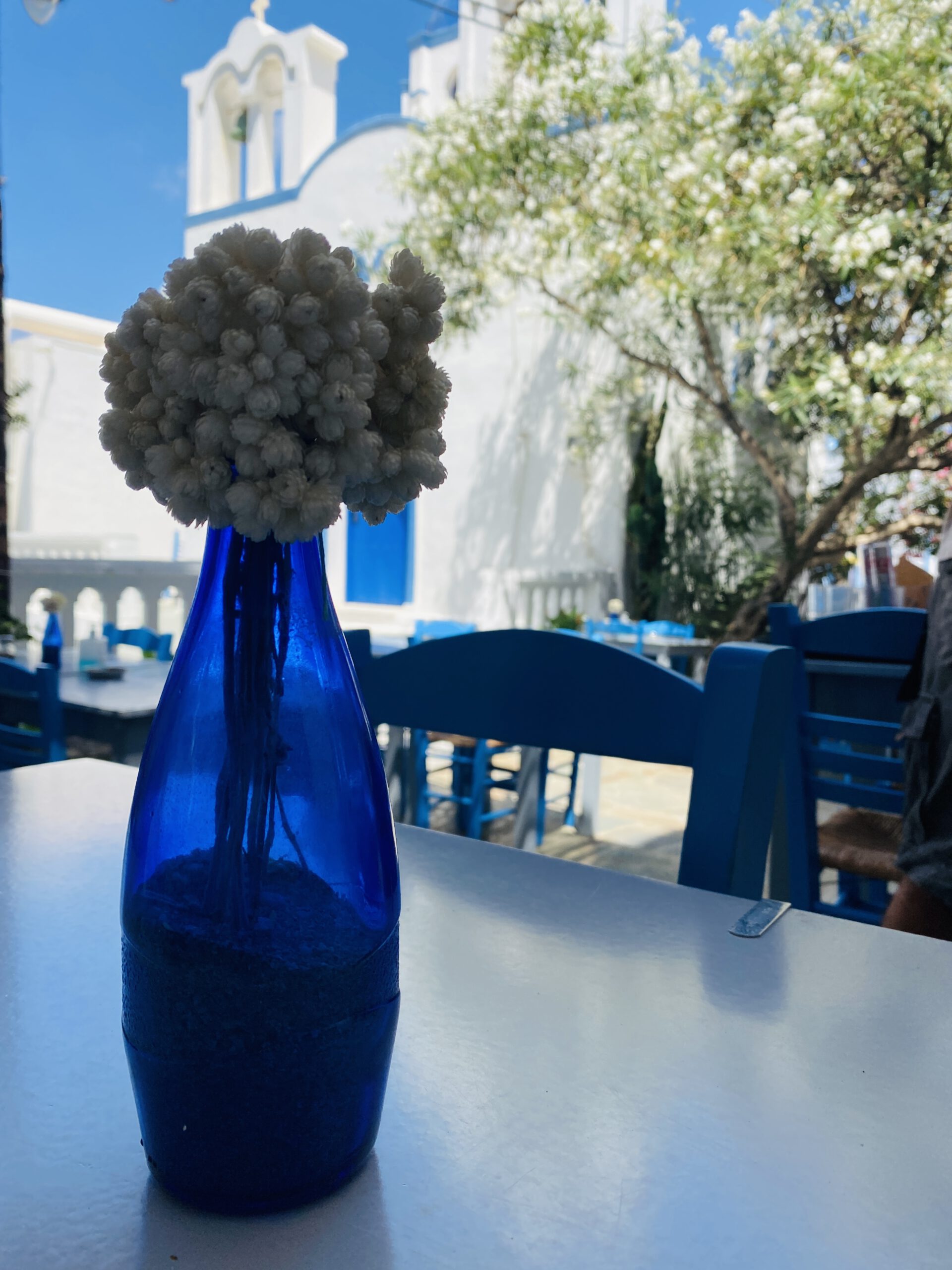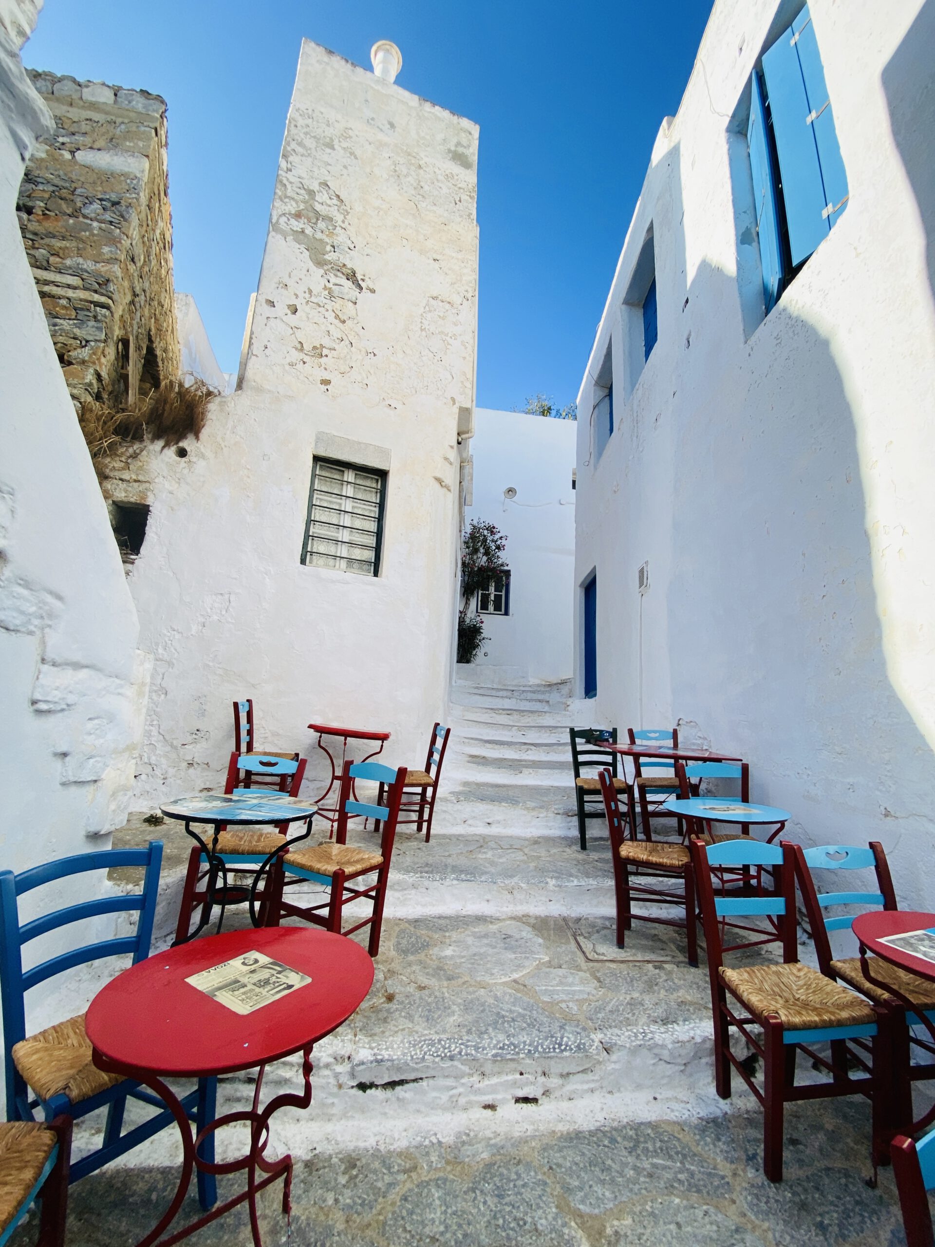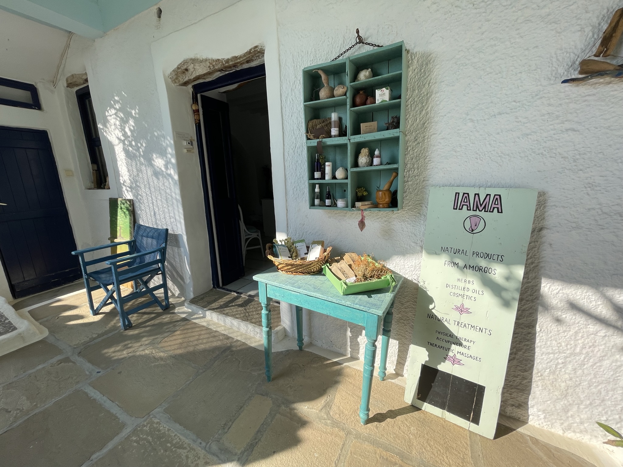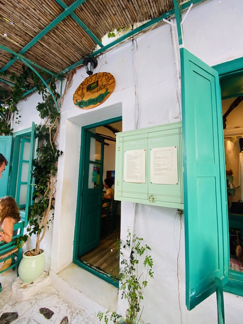 Das Dorf Tholaria auf der Insel Amorgos ist ein wunderschönes Dorf, umgeben von malerischen Bergen, Blumen und Kräutern. Die engen Gassen, die gemalten Blumen auf den Gassen, die weiß getünchten Häuser und die traditionellen Cafés und Tavernen luden zum Verweilen ein. Ein wirklich besonderes und uriges Kafenio, ein klassisches Kaffeehaus war das Kali Kardia direkt an der Kirche. Hier gab es die besten Fleischbällchen der Insel. Gleichzeitig ist das Café ein angeschlossenes Ladengeschäft und wir konnten der Familie beim Kartoffelschälen für das Mittagsmahl zuschauen, die allesamt beim Betrieb des Laden-Kaffeehauses mithelfen. Autentischer geht es nicht!