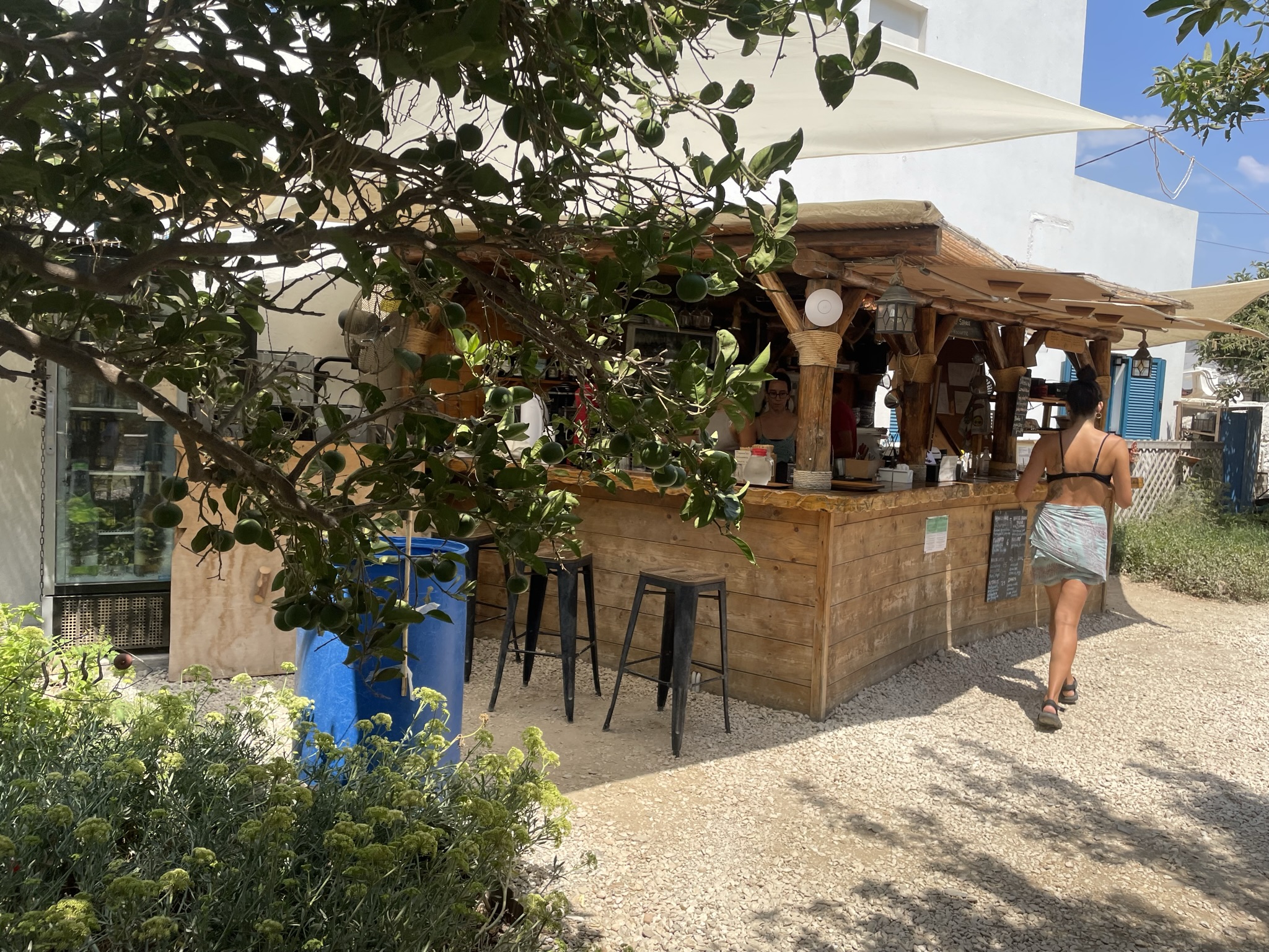 Katapola auf Amorgos ist ein kleiner Fischerhafen mit wenigen Sehenswürdigkeiten. Eine davon ist die Le Grand Bleu Bar, die im Film „Im Rausch der Tiefe“ gezeigt wird. In der Bar beobachteten wir den geschäftigen Hafenverkehr und entspannten bei einem Frappé. Das Städtchen ist bekannt für seinen Fährhafen, der regelmäßig von Kreuzfahrtschiffen und Fähren angefahren wird. Wer dem Trubel des Hafens entfliehen möchte, findet im Botanical Garden eine Ruheoase. Dort stehen einige Tische und Stühle in einem Garten und an der Bar können Kräutergetränke bestellt werden. Direkt unterhalb des Gartens befindet sich ein Kräutergeschäft, in dem man sehen kann, wie die Kräuter getrocknet werden, bevor sie weiter verarbeitet werden.