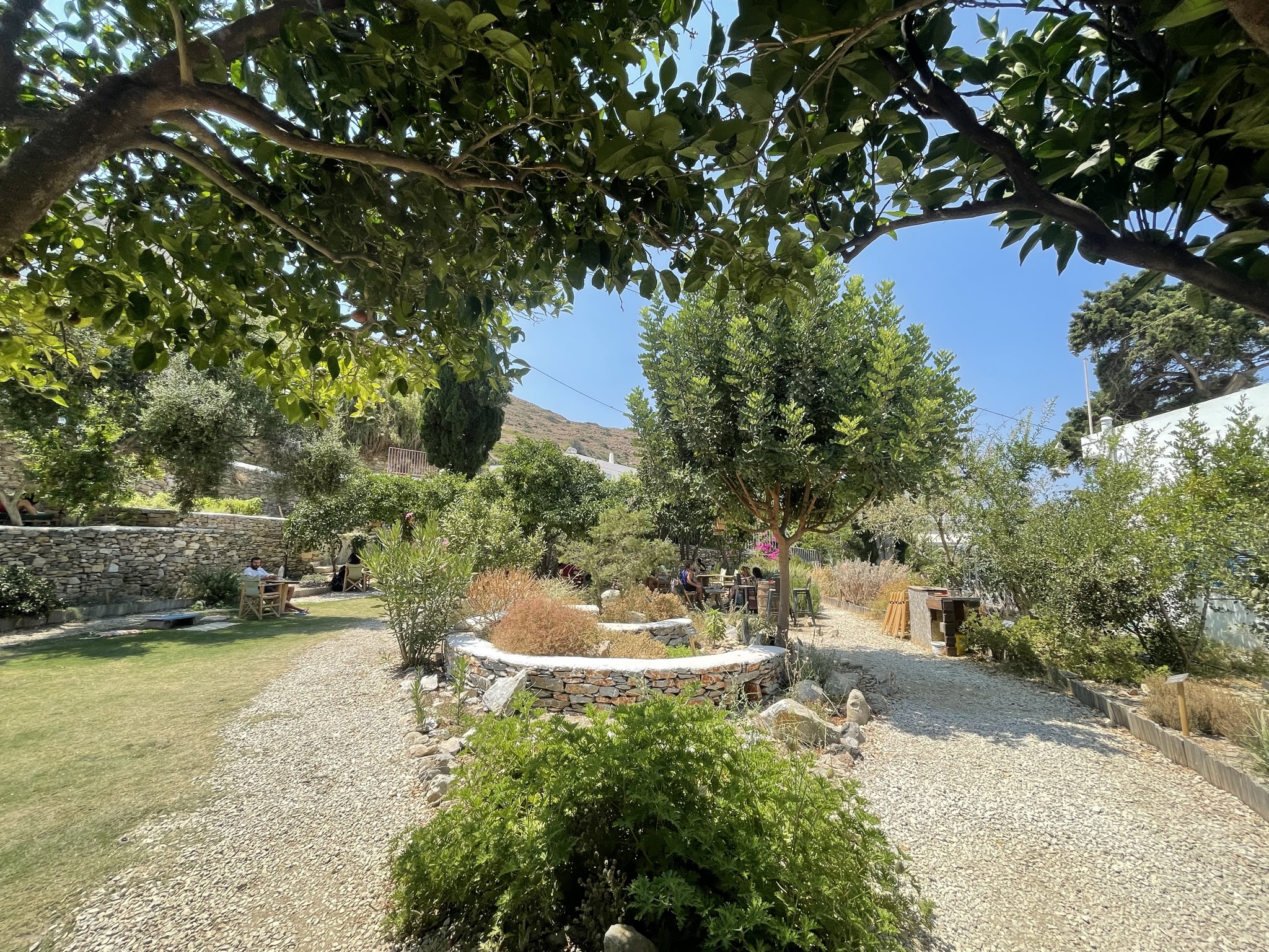 Lagkada ist ein schönes Dorf oberhalb von Aegali. Wenn Ihr vom Dorf-Parkplatz ins Zentrum kommt, lauft Ihr an mehrere Tavernen und Cafés vorbei. Hier hatten wir im Café Platsanos unseren besten Frappé und unseren besten Melonen-Smoothie getrunken. Bei unserem Bummel durch das Dorf entdeckten wir auch den großartigen Naturkosmetikladen Iama (hausgemachte Öle aus lokalen Kräutern), der wirklich einen Besuch wert ist. Die Ladenbesitzerin stellt ihre eigenen Kräuteröle und -wässer her. Das Johanniskrautöl, das wir hier gekauft haben, hat ausgezeichnet gegen unseren Sonnenbrand geholfen.
