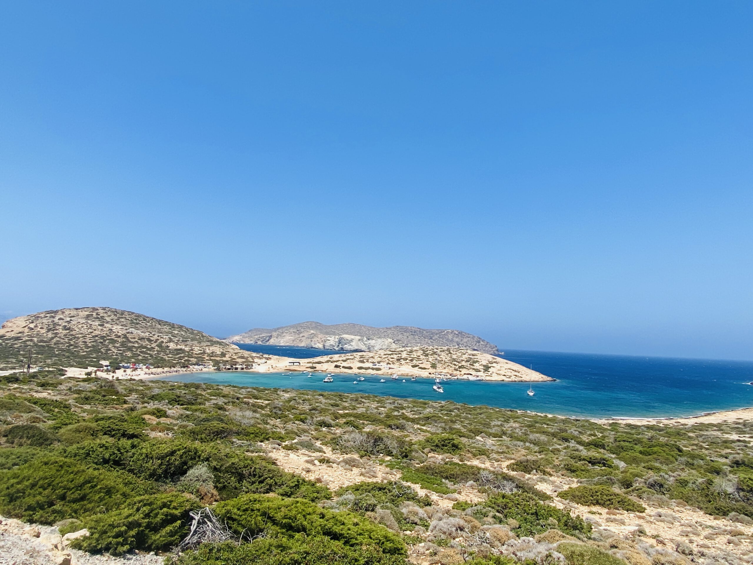 Ganz im Süden der Insel befindet sich der Lagunenstrand Kalotaritissa mit Liegen und einem kleinen Kiosk, der auch kleine Snacks wie Gyros anbietet. Er ist der größte Sandstrand der Insel und lädt zum Spazieren ein. Als wir im August dort waren, war es unglaublich ruhig und ein paar Fischerboote weilten in der Lagune. Das Wasser war herrlich klar und wir konnten bis auf den Grund sehen. Wir fanden ihn mit dem Nikouria Strand, den Schönsten der Insel.