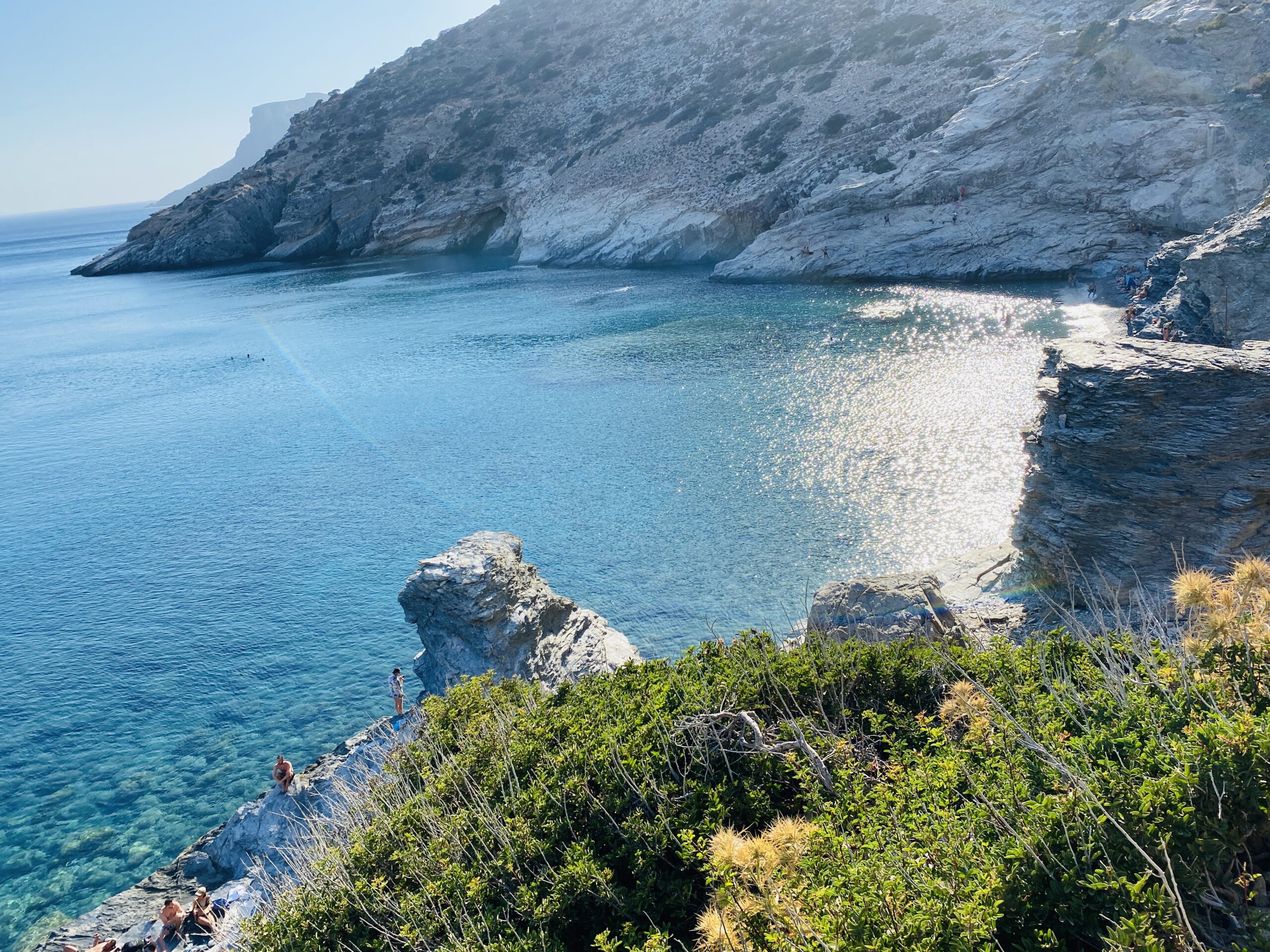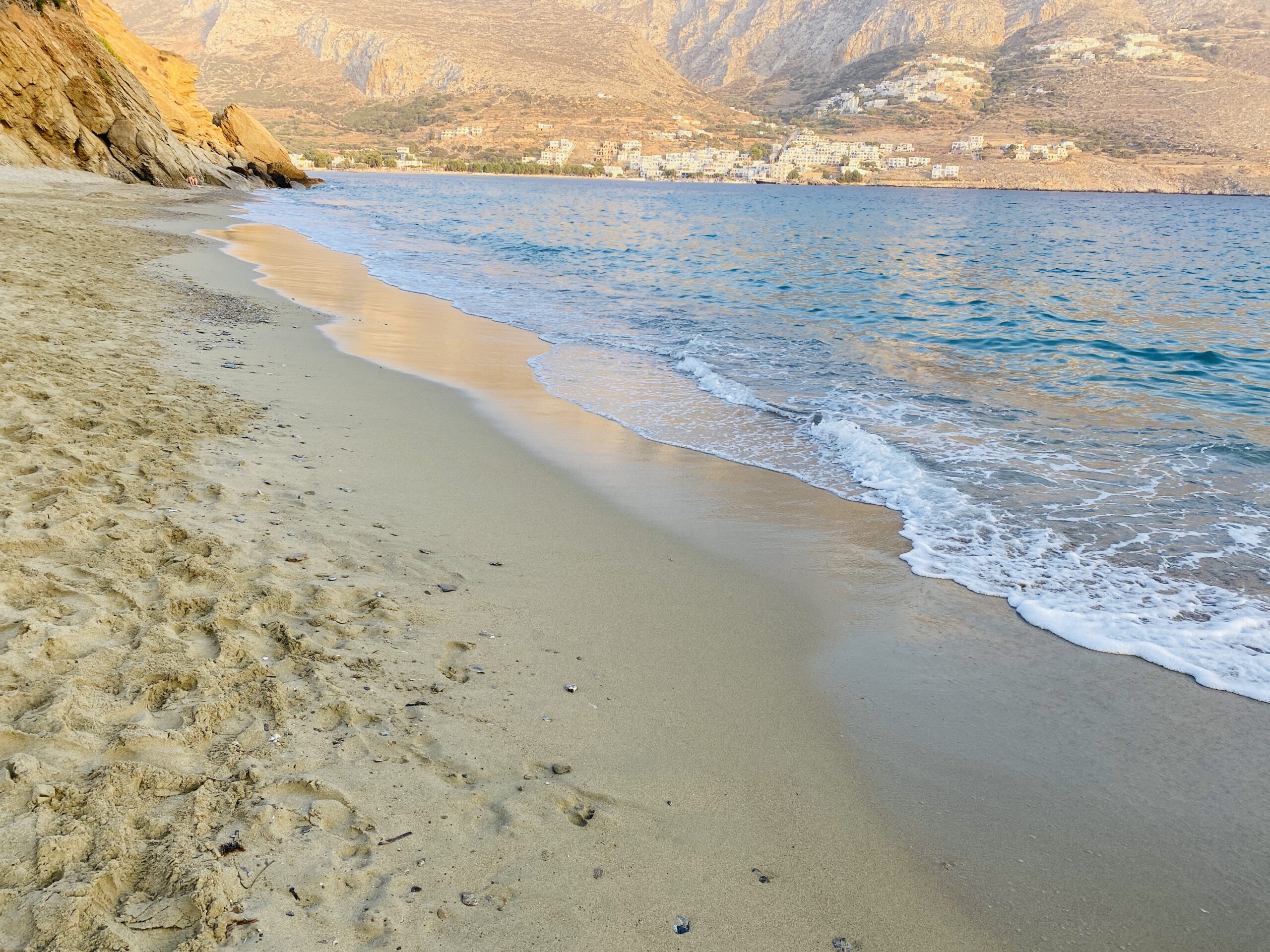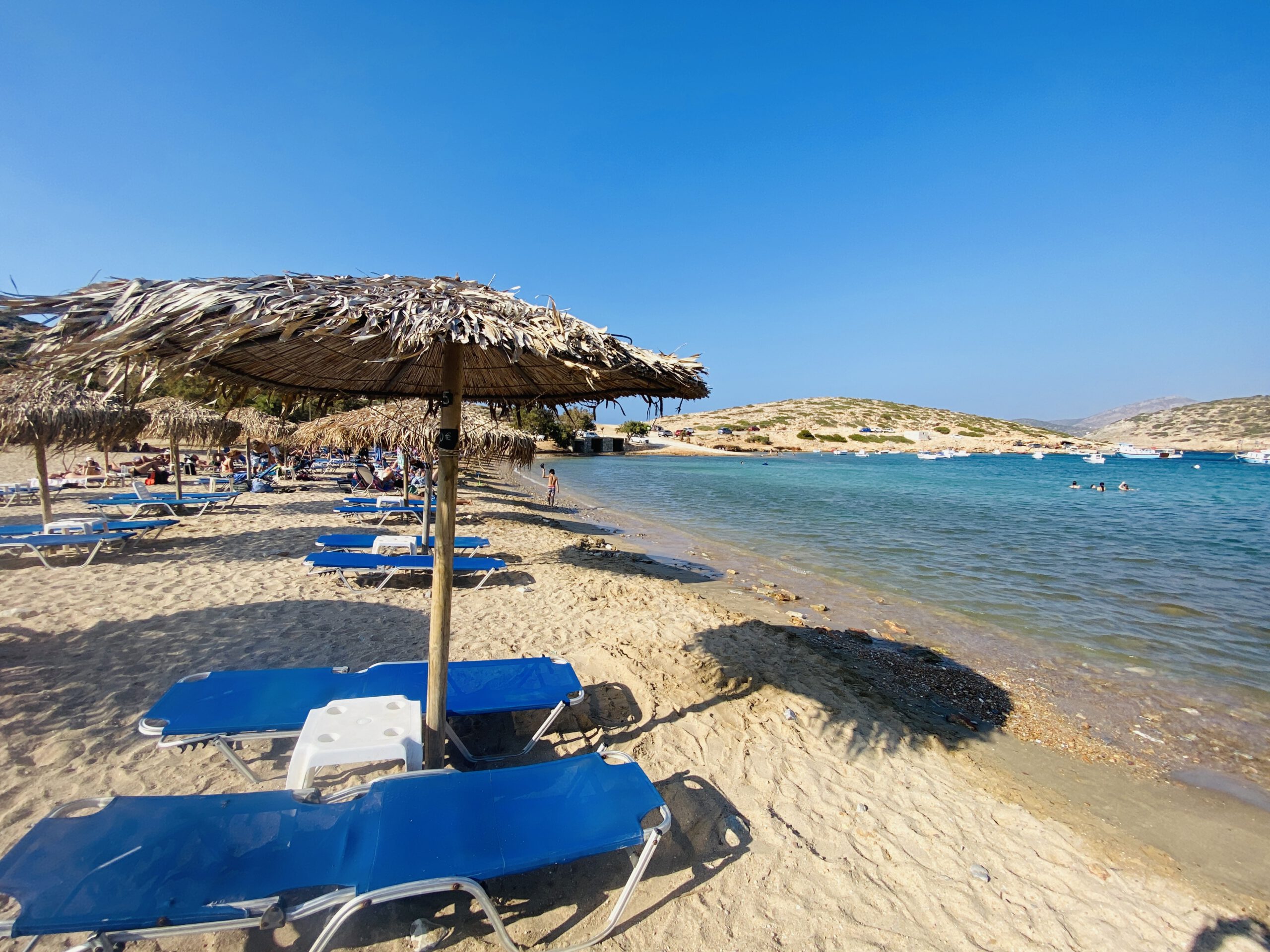 Amorgos ist nicht wie Naxos eine Inseln mit kilometerlangen Sandstränden. Einige Buchten und Strände wie Kalotaritissa sind mit dem Auto erreichbar, manche nur zu Fuß oder per Boot. In der Hochsaison gibt es einen Bootstransfer ab Katapola für die Strände Plakes oder Maltezi (die aber auch zu Fuß erreichbar sind), ab Agios Pavlos (Hotel Aqua Petra) einen für die Insel Nikouria. Seid in der Hochsaison ab 10.30 – 11 Uhr an der Ablegestelle zu sein, da es danach voll wird.