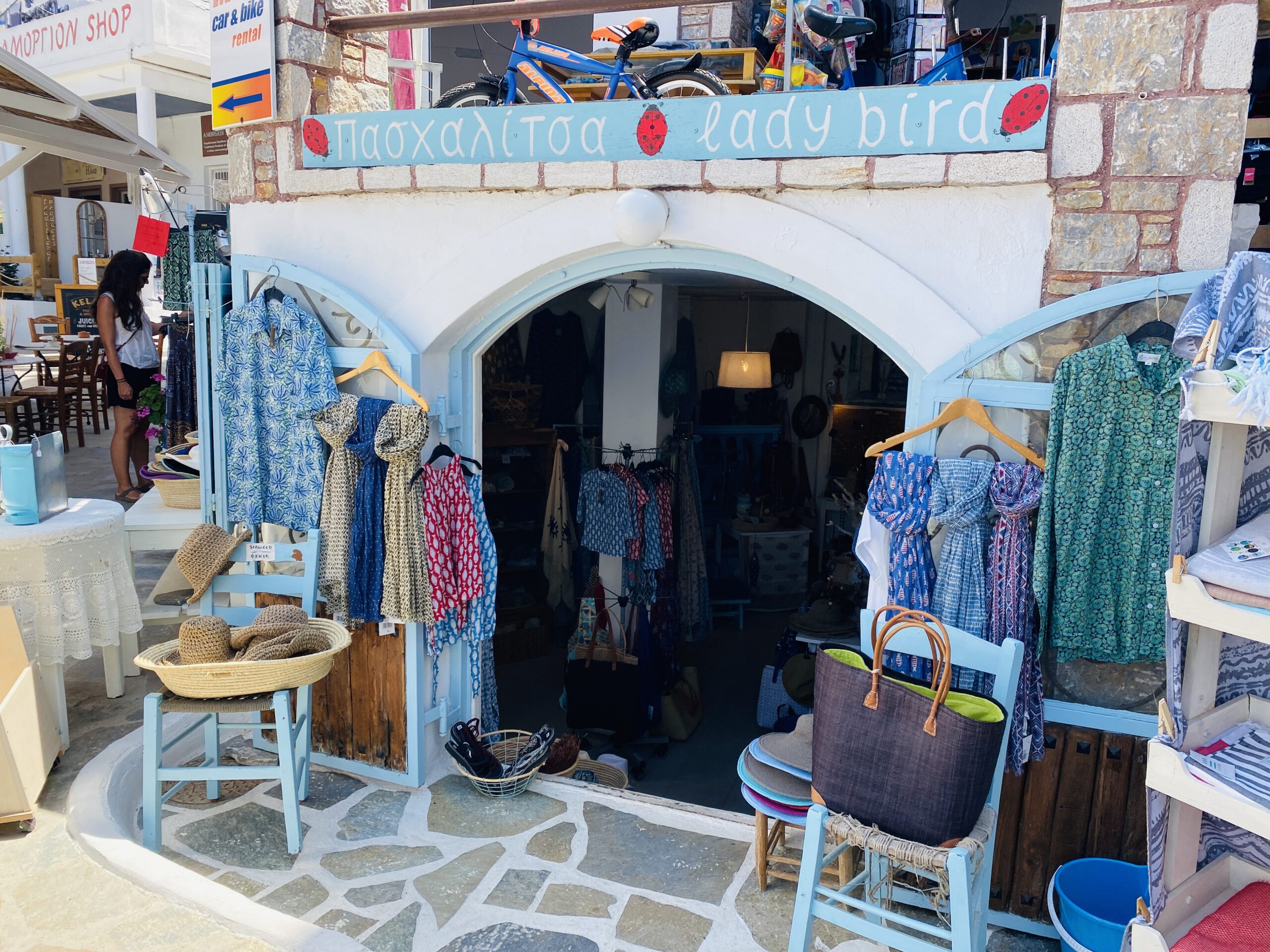 Aegali ist ein süßes Fischerörtchen mit Hippie-Touch und noch sehr ursprünglich und entspannt. Es gibt ein paar netten Boutique und viele Tavernen. Ein Klassiker ist das Restaurant To Nimani mit der besten Fischsuppe, die wir je gegessen haben. Ebenso mochten wir den Hipie-Laden Lady Bird, der von einem Holländer betrieben wird und schöne Klamotten hatte.