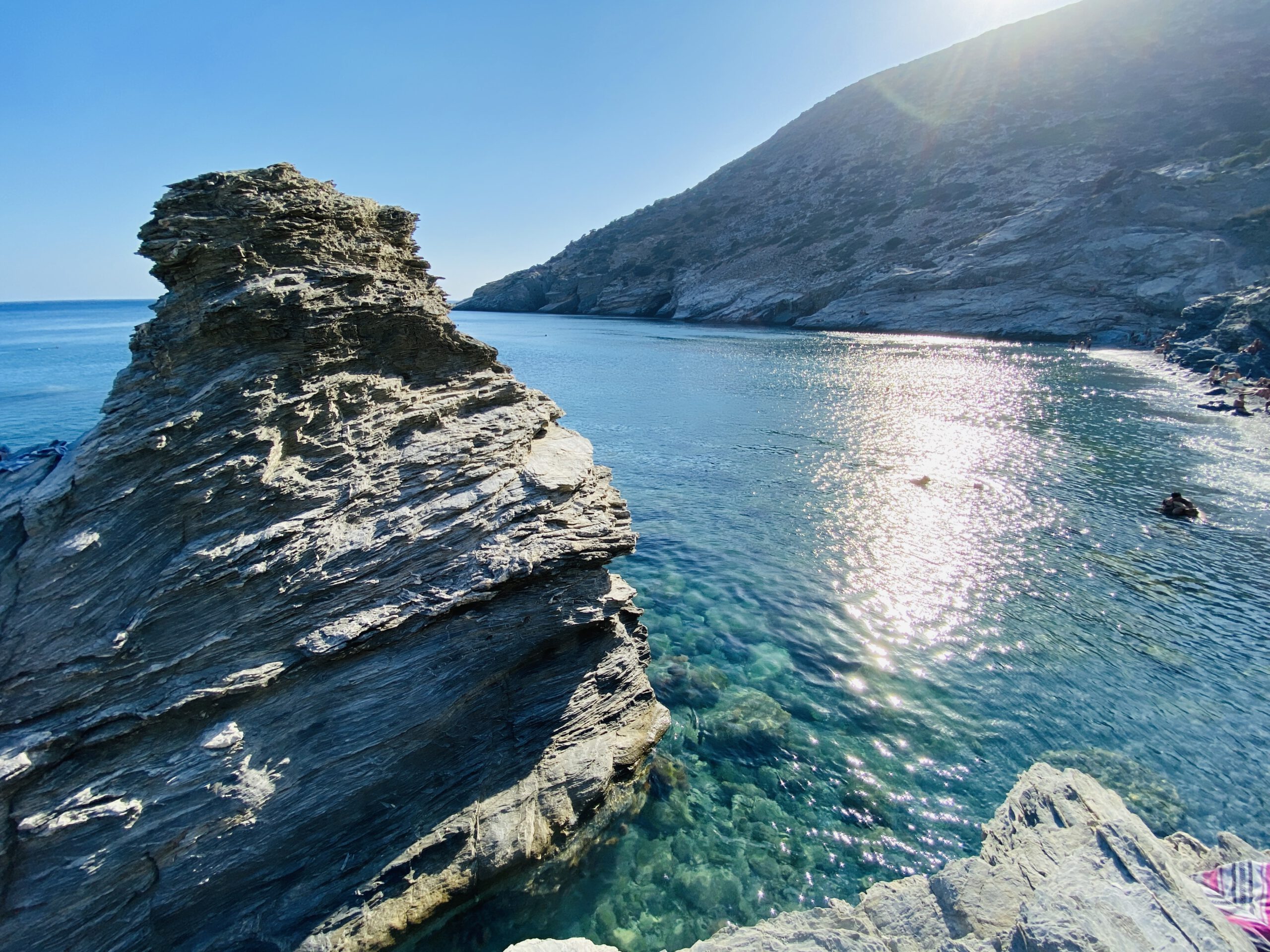 Die Nikouria-Halbinsel ist ein wahres Paradies für Strand- und Schnorchel-Liebhaber. Der lange Sandstrand, die einsamen Buchten und die unglaublichen Schnorchelspots mit dem türkisblauen Wasser sind einfach unbeschreiblich. Wir hatten noch nie so viele schöne und große Muscheln beim Schnorcheln gefunden wie dort. Wir empfehlen Euch, mit einem der ersten Boote überzusetzen, damit Ihr noch eine der attraktiven und wenigen Strandliegen mit Schirmen ergattert.