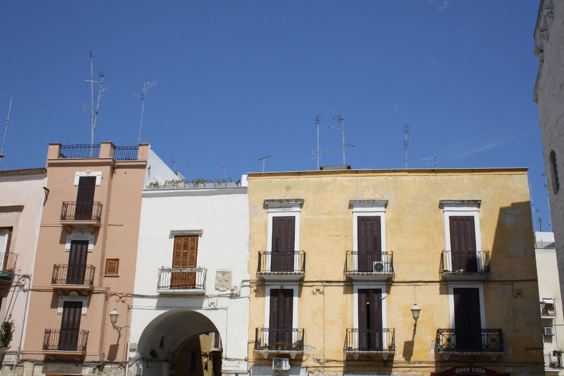Die Ortungsfunktion des Handys solltet Ihr in der Altstadt einschalten. Denn man verläuft sich in diesem Gewirr an kleinen Gässchen relativ schnell. Die Altstadt von Bari war bis vor wenigen Jahren noch heruntergekommen und hatte einen schlechten Ruf. Zum Glück haben die Italiener verstanden, dass sie doch wunderhübsch ist und in den letzten Jahren viel Geld in das neue = alte Stadtviertel gesteckt. Das macht die Altstadt auch noch so ursprünglich. Überall hängt Wäsche von den kleinen Balkonen, die Einwohner sitzen vor ihren Häusern und unterhalten sich, es herrscht Alltagstrubel. Noch sind erst wenige teure italienische Restaurants und Souvenirgeschäfte in dieses Viertel eingezogen. So dass man sich herrlich treiben und hinter jeder Ecke neue schöne Flecken entdecken kann. Natürlich hat es uns dann doch in eine Pizzeria mit „Tourist-Menu“ verschlagen, was aber in Italien meist kein Fehler ist – denn Pizza schmeckt eigentlich immer gut.