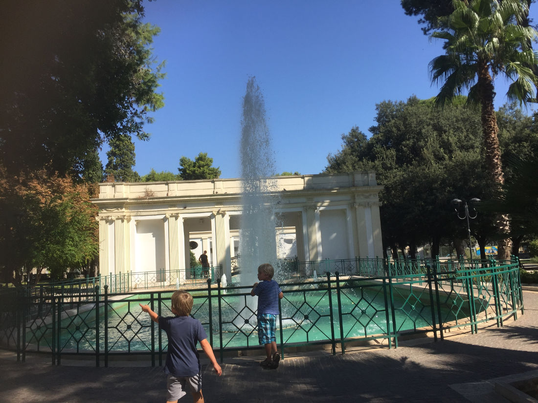 Außerhalb der Altstadtmauern findet Ihr einen kleinen Park mit Spielplatz und Springbrunnen. Hier könnt Ihr noch einmal entspannen und die Kinder flitzen lassen, bevor Ihr wieder ins Auto steigt.