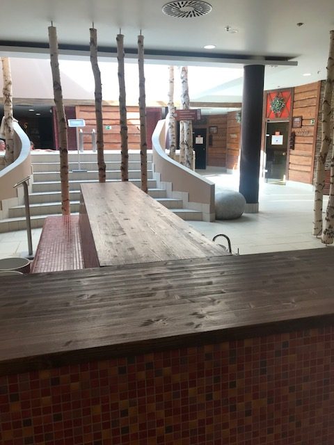 Wir Eltern konnten unsere Kinder zwischendurch in der Kinderbetreuung abgeben und sind in den Spa-Bereich gegangen: sehr geschmackvoll eingerichtet mit viel Holz und Birkenstämmen. Die Vulkan-Sauna hatte es uns besonders angetan! Viele schwärmten auch von der Panorama-Sauna, die wir aufgrund von Zeitgründen nicht getestet hatten.