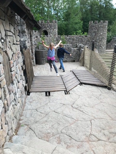 Darüber hinaus gibt es weitere Themenbereiche wie Nils Karlson Däumling oder die Krachmacherstraße oder Vimmerby in Miniatur. Bei Nils Karlson Däumling schlüpften wir Besucher selbst in die Rolle des Däumlings und stiegen auf überproportionale Stühle und Betten. Sehr begeistert waren die Kinder auch von den zahlreichen Spielplätzen, auf denen geschaukelt, geflogen und geklettert werden konnte.