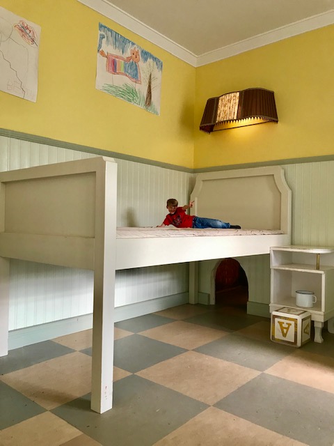 Sehr empfehlen können wir das parkeigene Hoteldorf in der Astrid Lindgren Welt. Es besteht aus dem Haupthaus mit Rezeption und einem kleinen Tante Emma-Laden und vielen Bungalows unterschiedlichen Komforts und Größe. Das Hoteldorf gleicht einer kleinen schwedischen Stadt mit Spielplätzen und vielen Kindern, die alle über das Gelände flitzen. Wir hatten einen urgemütlichen Bungalow mit einer kleinen Küchenzeile und Bad. Während wir draußen vor unserem Bungalow – wie alle anderen Eltern auch – gemütlich unseren Rotwein schlürften, spielten die Kinder unentwegt, denn es gab allerhand zu entdecken: einen riesigen Kleiderschrank mit Verkleidungsklamotten von anno dazumal, einen Spielplatz, der wie ein kleines Dorf mit Krämerladen gebaut war, einer alten Kutsche und und und. Wir sahen unsere Kinder den ganzen Abend nicht und nahmen sie bei Anbruch der Dämmerung als komplette Schmutzfinken entgegen. Sie waren selig.