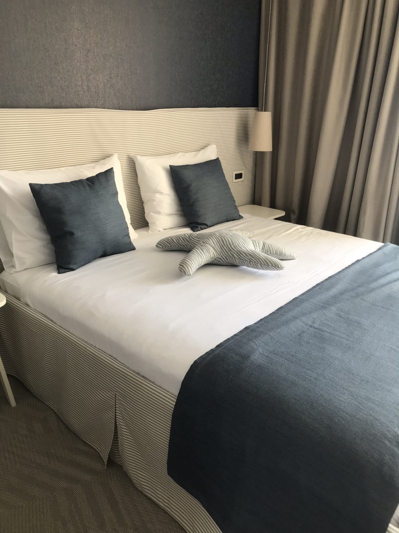 Wir hatten ein Familienzimmer, das sehr persönlich und geschmackvoll eingerichtet war. Es bestand aus einem Eltern- und einem separaten Kinderschlafzimmer. Fisch- und Muschelmotivbilder hingen in dem blau-weiß gehaltenem Zimmer. Die Zimmer waren nicht groß, aber völlig ausreichend, da wir uns dort ohnehin nur zum Schlafen aufhielten.