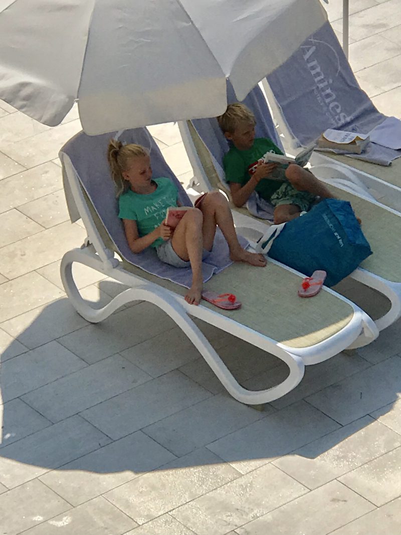 Während wir Erwachsenen das wunderbare Meer zum Baden und Schnorcheln bevorzugten, liebten unsere Kinder den Außen-Swimmingpool. Teilweise verbrachten sie dort den ganzen Tag. In unseren Augen hätte er größer sein können, aber den Kindern hatte er völlig ausgereicht. Um den Pool und am Meer befinden sich schöne Liegeterrassen.