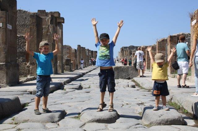 Pompeij ist wirklich unglaublich! Selbst unsere Kinder, die sonst bei alten Gebäuden in den Streik gehen, waren total fasziniert von dieser riesengroßen Stadt, die so gut erhalten ist und so viele tolle Einblicke von früher bietet. Das liegt bestimmt auch an den in Gips gegossenen Opfern, die aufgrund des Lavagesteins, der sie 79 v. Christus überschüttet hat, als Hohlräume konserviert wurden, die dann mit Gips aufgefüllt wurden. Das fasziniert Kinder viel mehr, als dass es sie gruselt.