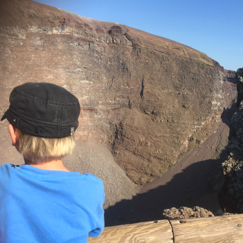 Der Aufstieg auf den Vesuv hat uns deutlich mehr beeindruckt als jemals vorher angenommen. Der Krater ist zwar (aktuell) nicht aktiv, aber der Rundweg am Rand des gigantischen Kraters mit Blick auf Neapel, Pompeji und Sorrent, der leichte Schwefelgeruch und die klitzekleinen Rauchsäulen, die aus dem gigantischen Krater aufsteigen, belohnen alle Mühen. Garniert mit Informationen aus dem Internet, die wir unseren Kindern vorab über diesen Jahrtausende alten Vulkan vorgelesen haben, waren wir alle sehr gespannt. Unseren Kindern und uns hat auch dieser Ausflug am Golf von Neapel sehr gut gefallen!