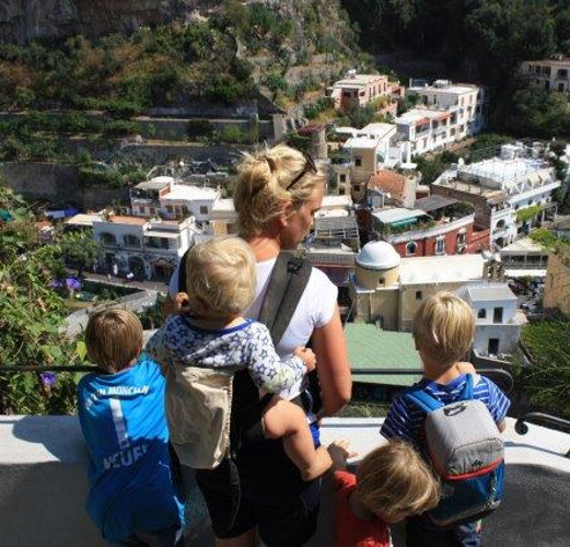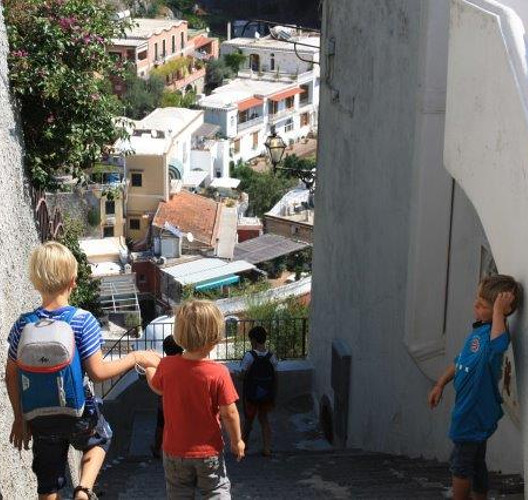 Positano eine wunderschöne kleine Stadt, in den Hang gebaut, den typischen italienischen, grau-braunen Häusern mit roten Dächern und einem kleinen Strand, an dem die Schiffe nach Capri und zurück im Minutentakt an- und ablegen. Wir haben uns an den Strand gesetzt, sind ins Wasser gehüpft und haben das Geschehen um uns herum verfolgt. Richtig amüsant und für unsere größeren Kinder, die Boote und Trubel lieben, ein Highlight! Mit kleineren Kindern ist Positano nicht unbedingt zu empfehlen, weil es nicht Kinderwagen-geeignet ist.