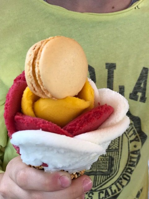 Toll brunchen konnten wir im Restaurant „Aux Prés“ und leckere Gyoza im Restaurant „Sapporo“ essen. Auch empfehlen wir Euch, im Marais-Viertel bei „Chez Marianne“ einen Felafel zu essen. Das ist ein absolutes Muss! Ihr müsst zwar ein wenig warten, aber er ist einfach köstlich. Ein absoluter Klassiker ist auch das Café de Flore im Quartier Saint-Germain-de-Près. Und solltet Ihr Eishunger haben: Das Roseneis ist der Hit.
