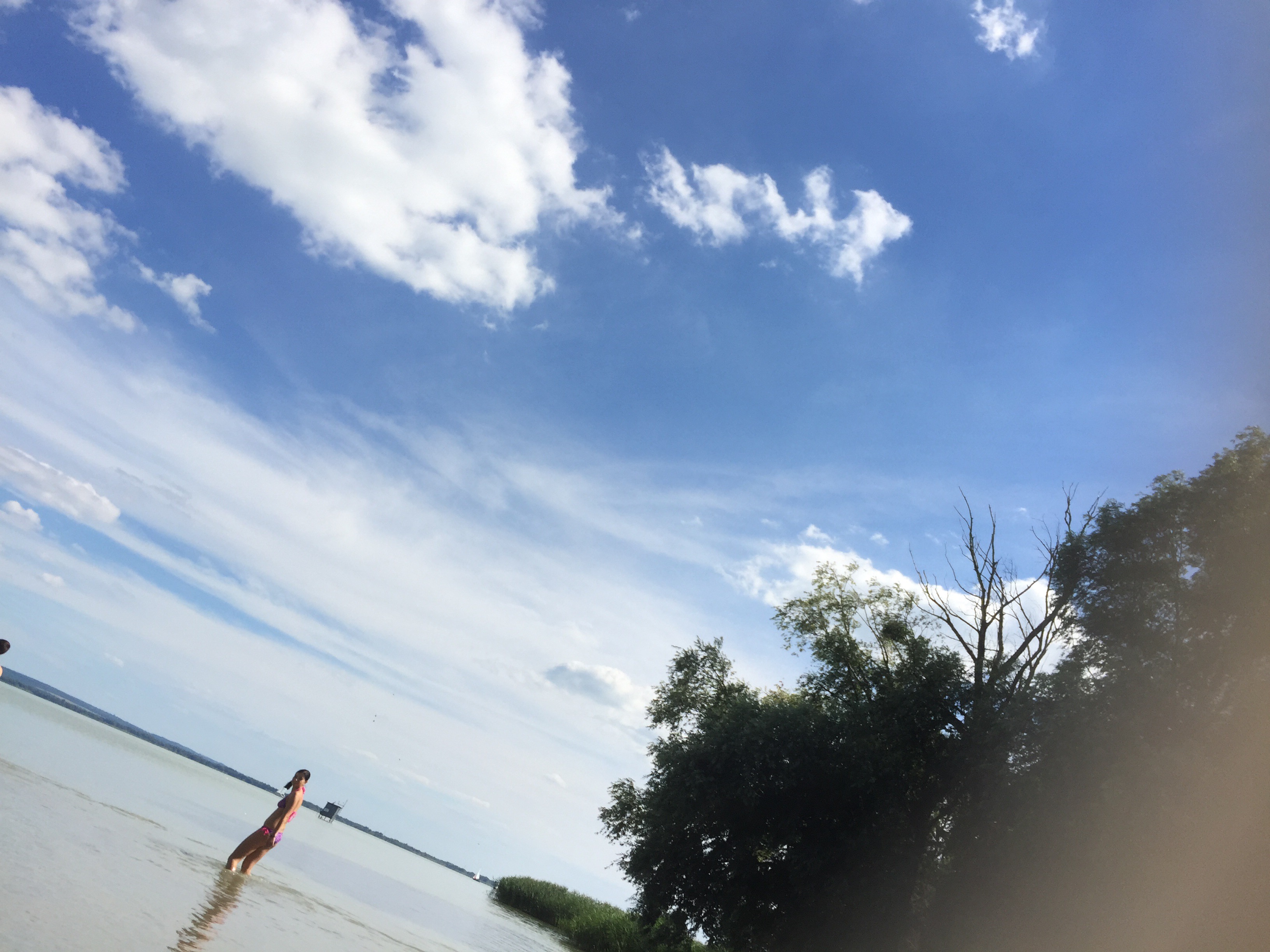 Der Plattensee, ungarisch „Balaton“ genannt, verdient seinen Namen „Ungarische Badewanne“ zu Recht. Er ist extrem seicht, am Südufer nie tiefer als drei Meter und recht warm. Vor allem für Familien mit kleinen Kindern, wie wir aktuell eine sind, war er optimal! Wir konnten stundenlang in den See hineinspazieren, schwimmen oder wunderbar auf der Luftmatratze oder auf einem SUP den See genießen. Wenn man sich nicht zu weit vom Ufer entfernt, steigt man einfach ab und läuft zurück zum Ufer. Kleinere Kinder können, ohne die ständige elterliche Sorge, dass die Kleinen mit einem Schritt im tiefen Wasser sind, herrlich plantschen.