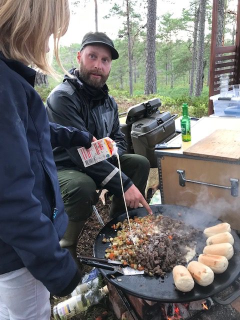 Eine Elchsafari war ein absolutes Muss für uns, nachdem wir Deutschen, seien wir ehrlich, mit Schweden Elche, Knäckebrot und Pipi Langstrumpf verbinden. Also buchten wir eine abendliche Safari mit Guide David im Tiveden Nationalpark. Angekommen im Nationalpark führte uns David in den Wald, um gemeinsam mit uns das Schwedische Nationalgericht Pytt y Panna mit Kartoffeln, Karotten, Zwiebeln und Elchfleisch über dem Feuer zu kochen. Während er Gemüse schnippelte, erklärte er uns alles über Elche: von Zähnen über Geweih, Gewicht bis hin zu Geruchssinn, Gehör und Paarungszeit. Auch Elchrufe mussten wir imitieren! Wir genossen das leckere Mahl im Wald und machten uns dann auf Safari. Allerdings im Kleinbus, weil zu viele Mücken unterwegs waren und uns die Elche sonst gerochen hätten. Erst gegen Ende der Safari zeigten sich immerhin eine Elchkuh und ein Elchbulle und wir waren selig. Ein tolles Erlebnis, welches wir empfehlen können!