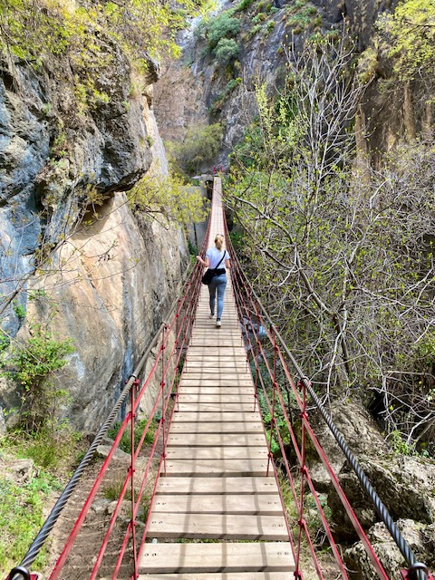 Imposant thront die weiße Kuppe der Sierra Nevada über Granada, da solltet Ihr einen Ausflug in den Nationalpark Sierra Nevada nicht verpassen. Nur acht Kilometer von Granada entfernt liegt das Bergdorf Monachil, mit dem gleichnamigen Fluss. Der ausgeschriebene Wanderweg heißt Cahorros de Monachil und führt entlang des Flusses hoch in eine spektakuläre Schlucht, die mit Hängebrücken gesäumt ist. Ihr braucht in jedem Fall eine gute Beweglichkeit, denn Ihr müsst Euch an zahlreichen Felsen entlang schlängeln. Und meidet in jedem Fall das Wochenende, wenn Monachil von zahlreichen Besuchern überströmt wird.