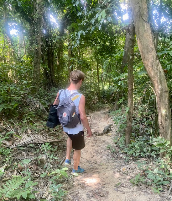 Anschließend geht es etwa zehn Minuten steil bergauf durch den dichten, tropischen Dschungel. Mit Kindern ist dieser Abschnitt gut machbar, wenn auch etwas anstrengend. Festes Schuhwerk und ausreichend Wasser sind hier sinnvoll. Für uns war dieser Weg eines der Highlights des gesamten Urlaubs, nicht zuletzt, weil uns ein Waran mehrere Minuten lang begleitet hat – ein echtes Naturerlebnis, das unseren Kindern lange in Erinnerung geblieben ist.