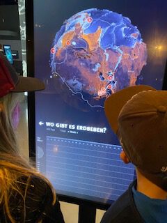 Eigentlich wollten wir nur zwei Stunden im Ars Electronica bleiben. Daraus wurden ganze vier Stunden, weil uns das Museum vollkommen in sich verschlang. Wir studierten Zukunftstechnologien wie der digitale Bürger, der 24 Stunden lang getrackt wird und unser zukünftiges Arbeiten mit Robotern. Die Kinder versuchten ein Gesicht so zu verfälschen, dass es nicht mehr von einer Gesichtserkennungssoftware erkannt werden konnte und ließen sich Realtime anzeigen, wo es gerade ein Erdbeben gibt. Außerdem lernten sie interaktiv Landschaften so zu verändern, dass Seen und Flüsse entstehen. Uns Erwachsenen faszinierten unter anderem wie Kunstleder und Textilien aus Apfelschalen oder Kaffeesatz hergestellt werden. Zum Schluss führte uns eine 3 D-Reise im Deep Space 8k durch unser Weltall. Einfach gigantisch dieses Museum!