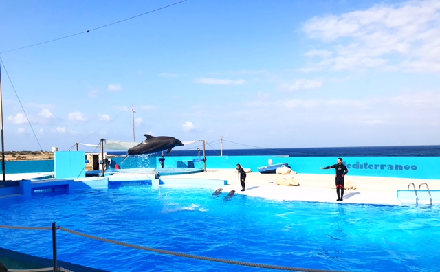 Der etwas in die Jahre gekommene Mediteraneo Park hat ein Reptilienhaus (leider werden die Reptilien nicht wirklich artgerecht gehalten), eine riesige Vogel-Voliere und mehrere Shows mit Seelöwen, Delfinen, Papageien und Reptilien zu bieten. Die Kinder waren begeistert (auch wenn wir schon bessere Shows von Delfinen und Seelöwen erlebt haben) und fanden auch das Füttern der Wellensittiche und Kakadus ganz toll.