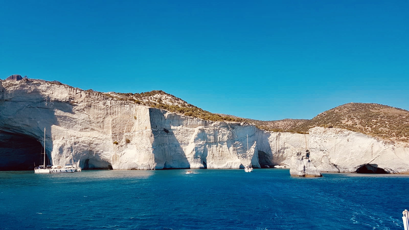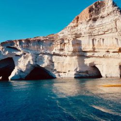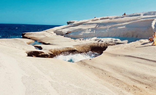 Milos war eine bezaubernde Insel und sie hatte sehr viel zu bieten. Zum Beispiel war da Mondlandschaft Sarakiniko. Ich fühlte mich wie auf dem Mond, denn es gab viele weiße Hügel. Manchmal ging es auf, manchmal ab. Mein Vater erklärte mir, dass hier mal James Bond gespielt hat. Das war cool und ich begann es mit meinem Bruder zu spielen.