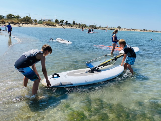 Um unseren Teenie-Kindern ein Sportprogramm bieten zu können, buchten wir einen dreitägigen Windsurfingkurs im Flisvos Sportsclub. Der Kurs bestand aus einer einstündigen Lehrstunde, in der ihnen der Surflehrer zunächst am Boden und später im Wissenswertes zu Wind, Balance und Surfen beibrachte. Nach der Stunde durften sie noch den ganzen Tag allein surfen und erlerntes praktisch üben. Wir staunten darüber, wie schnell die Kinder das Surfen lernten.