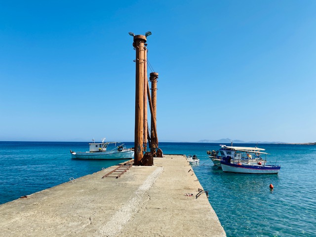 Moutsouna ist ein kleines, malerisches Fischerdorf an der Ostküste der Insel. Wir hatten das Gefühl in der Vergangenheit zu sein: die stillgelegte Verladestation und Seilbahn, die zum Transport von abgebauten Schmirgel aus den Bergen, diente, versetzte uns in eine Zeit, als hier Schmirgel abgebaut und verladen wurde. Wir haben dort kurz für ein Mittagessen haltgemacht und sind weiter zum einsamen Ligaridia Strand gefahren. Die Ostküste ist nicht sehr touristisch und sie bietet wunderbare Buchten zum Sonnenbaden und Schnorcheln.
