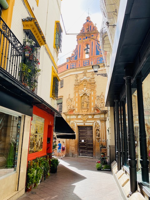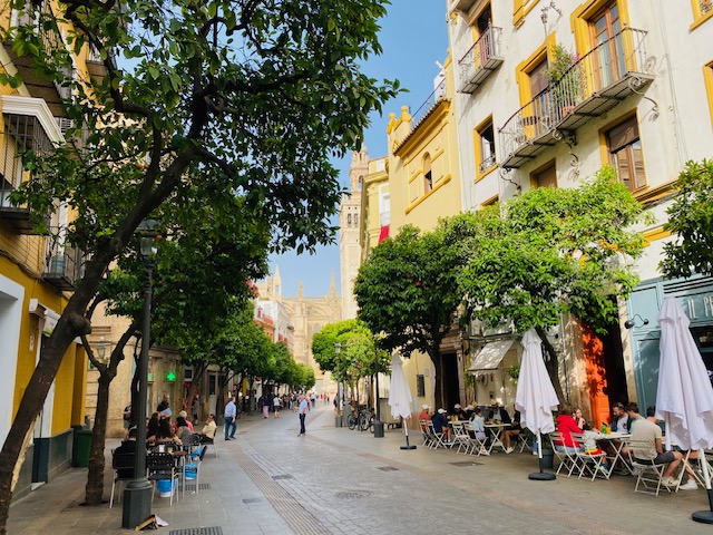 Was bei keinem Sevilla Besuch fehlen dar, ist das Barrio Santa Cruz, das ehemalige jüdische Viertel. Hier findet Ihr zahlreiche enge, verwinkelte Gassen, hübsche Plätze, kleine, nette Geschäfte und viele Tapas-Bars. Besonders hübsch ist der Plaza de Santa Cruz mit seinen Orangenbäumen – ein Ort zum Verweilen und Genießen der Atmosphäre. Doch das eigentliche Highlight des Viertels sind die Hauptsehenswürdigkeiten wie die beeindruckende Kathedrale, die Giralda und der Real Alcazar.
