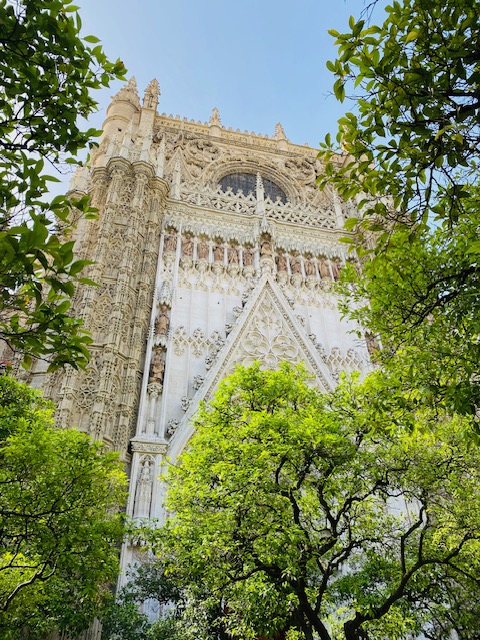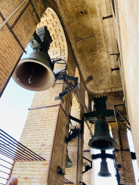 Die Giralda ist der Glockenturm der Kathedrale, das ehemalige Minarett der Hauptmoschee. Das Besondere an diesem Turm ist, dass er keine Stufen hat, sondern Rampen. Warum das so ist? Früher rief der Muezzin vom Minarett aus zum Gebet und musste dafür nach oben gelangen. Doch nicht nur zu Fuß, sondern auch auf einem Pferd. Deshalb wurden Rampen angelegt, damit der Muezzin und auch andere Personen bequem hinaufreiten konnten.