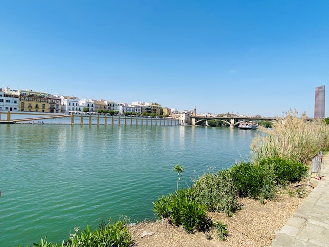Ebenfalls ein toller Platz, um die goldene Stunde zu erleben, ist das Ufer des Guadalviquir. Dann erscheinen die bunten Häuser von Triana in einem besonderen Licht. Kauft Euch was zu trinken und genießt sie.