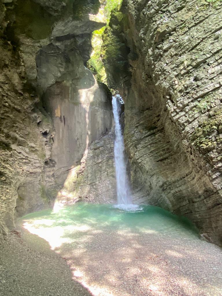 Mit seinen imposanten 144 Metern ist der Boka-Wasserfall (Slap Boka) der höchste Wasserfall in Slowenien und lässt sich schon von Weitem bewundern. Besonders beeindruckend ist die Tatsache, dass er sein Wasser aus einer unterirdischen Höhle des Kanin-Gebirges bezieht. Es gab sogar schon wagemutige Taucher, die diese Höhle erforscht haben. Leider könnt Ihr den Wasserfall nur von der Ferne aus betrachten und ein Fußmarsch von 30 Minuten (hin und zurück) solltet Ihr in jedem Fall ab dem Parkplatz (Boka Waterfall Parking) einplanen. Wenn Ihr also Prioritäten setzen müsst, dann würde ich diesen Wasserfall auslassen, weil Ihr ihn auch von der Straße oder vom Fluss Soča sehen könnt.