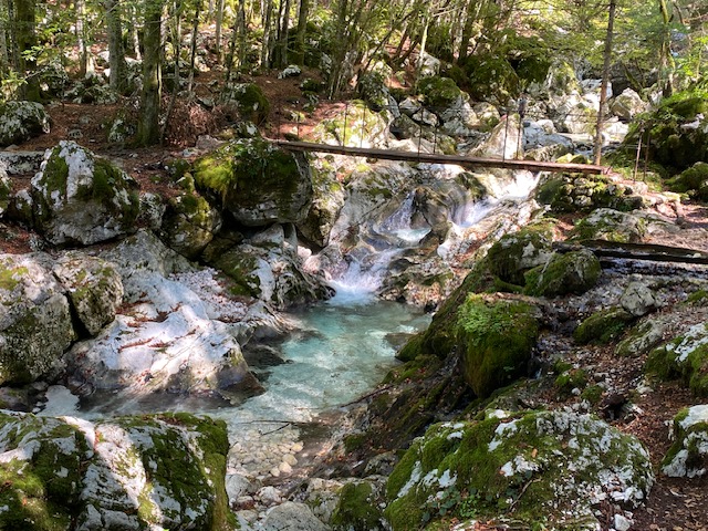 Ein weiteres Highlight ist der Šunik-Wasserhain (Šunikov vodni gaj) im malerischen Lepena-Tal, kurz bevor die Bäche Lepena und Šunik zusammenfließen. Neben vielen kleinen Wasserfällen bilden die Gumpen des Wasserhains eine tiefgrüne Tröge, die das klare Wasser glitzern lässt. Der Spaziergang vom Parkplatz (Lepena waterfalls car park) entlang des Wasserhains dauert etwa 20 Minuten und führt Euch durch eine idyllische Märchenlandschaft. Vergesst Eure Badesachen nicht, denn hier könnt Ihr Euch kurz erfrischen.