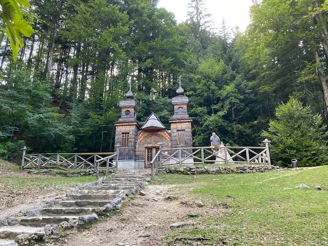 Ebenfalls passiert Ihr auf der Nordseite die russische Kapelle, eine Gedenkstätte an russische Kriegsgefangene, die während des 1. Weltkriegs am Bau der Passstraße beteiligt waren und dabei ums Leben kamen. In Kranska Gora liegt der malerische Jasna-See, der im Sommer leider von Touristen überlaufen ist.
