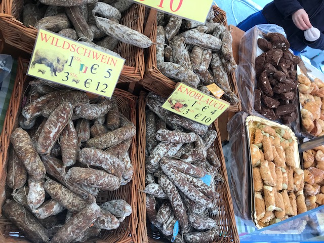 Jeden Donnerstag und Samstag findet in Klagenfurt der Benediktinermarkt am Benediktinerplatz mit regionalen, slowenischen und italienischen Produkten statt. Wir haben uns dort einen leckeren Snack zum Mittagessen geholt. Jeden Freitag und Samstag gibt es zudem eine kostenlose Stadtführung. Treffpunkt ist jeweils um 10 Uhr vor dem Tourismusamt am neuen Platz.