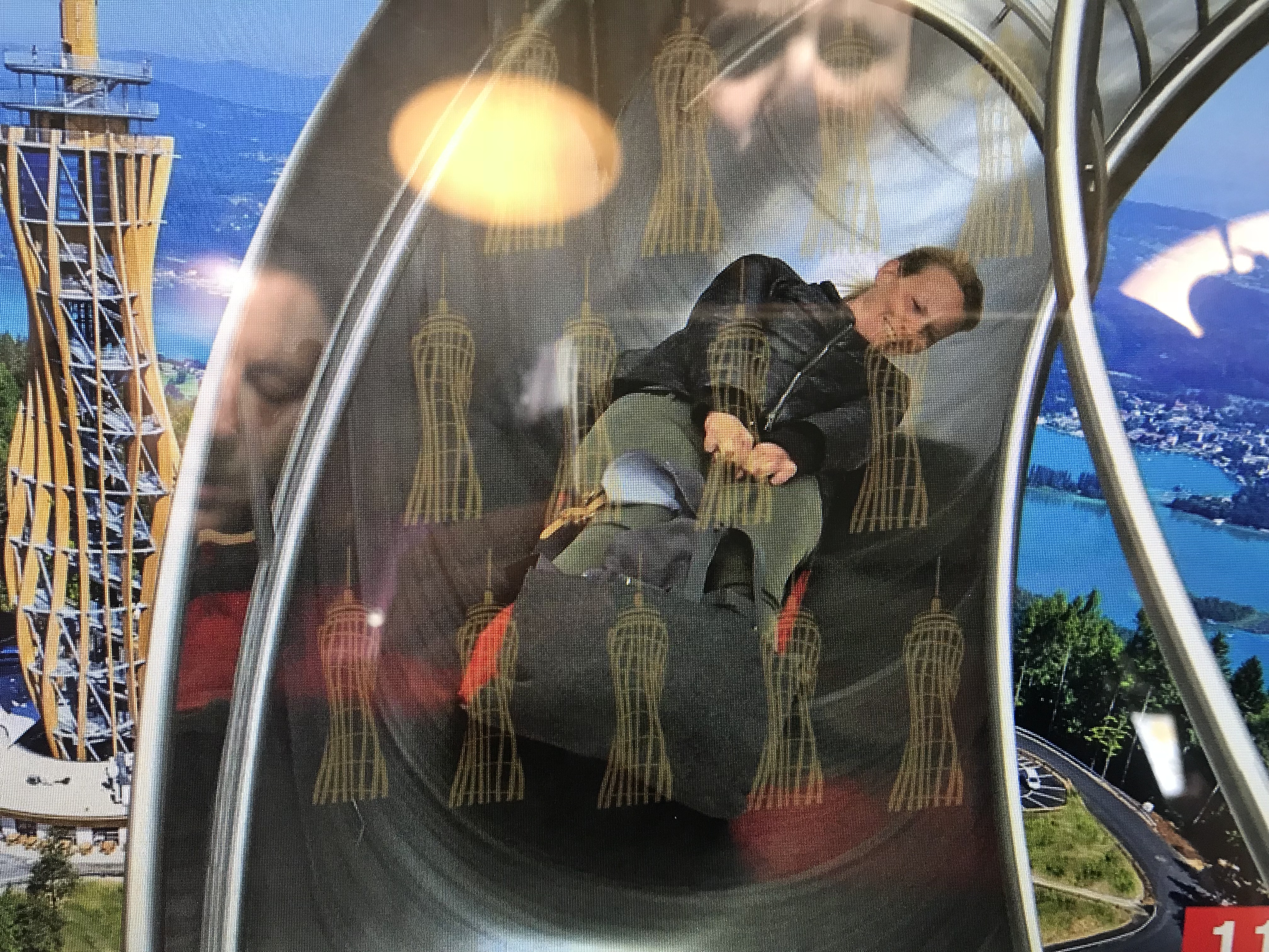Etwas oberhalb von Maria Wörth liegt Schliefing, eine kleine Gemeinde. Von dort haben wir eine wunderschöne Wanderung zum Panoramakogel gemacht. Am besten startet Ihr am Schieflingteich und folgt den Schildern zum Panoramakogel. Der Panoramakogel ist ein Event-Panorama-Aussichtsturm mit herrlichster Fernsicht. Im Osten erblickt Ihr den Wörthersee und im Westen das Karawankengebirge. Der Eintritt in den Kogel ist nicht ganz günstig, aber die sensationelle Aussicht belohnt die Kosten. Für ein paar Euro mehr könnt Ihr sogar im Kogel auf einer tollen Rutsche 50 Meter hinab zum Boden rutschen.
