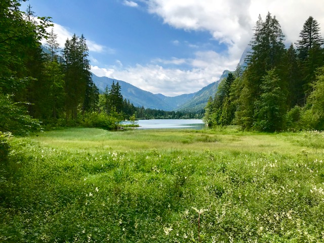 Schließlich kommt Ihr zum malerischen Hintersee, den Ihr auf dem Prinzregent-Ludwig-Weg umrundet. Nach der Umrundung gelangt Ihr an den Kiosk am Eingang des Zauberwaldes und lauft durch den Weg wieder zurück. Wenn Ihr die Umrundung ein wenig abkürzen möchtet, könnt Ihr auch mit einer kleinen Bootsfähre den See überqueren.
