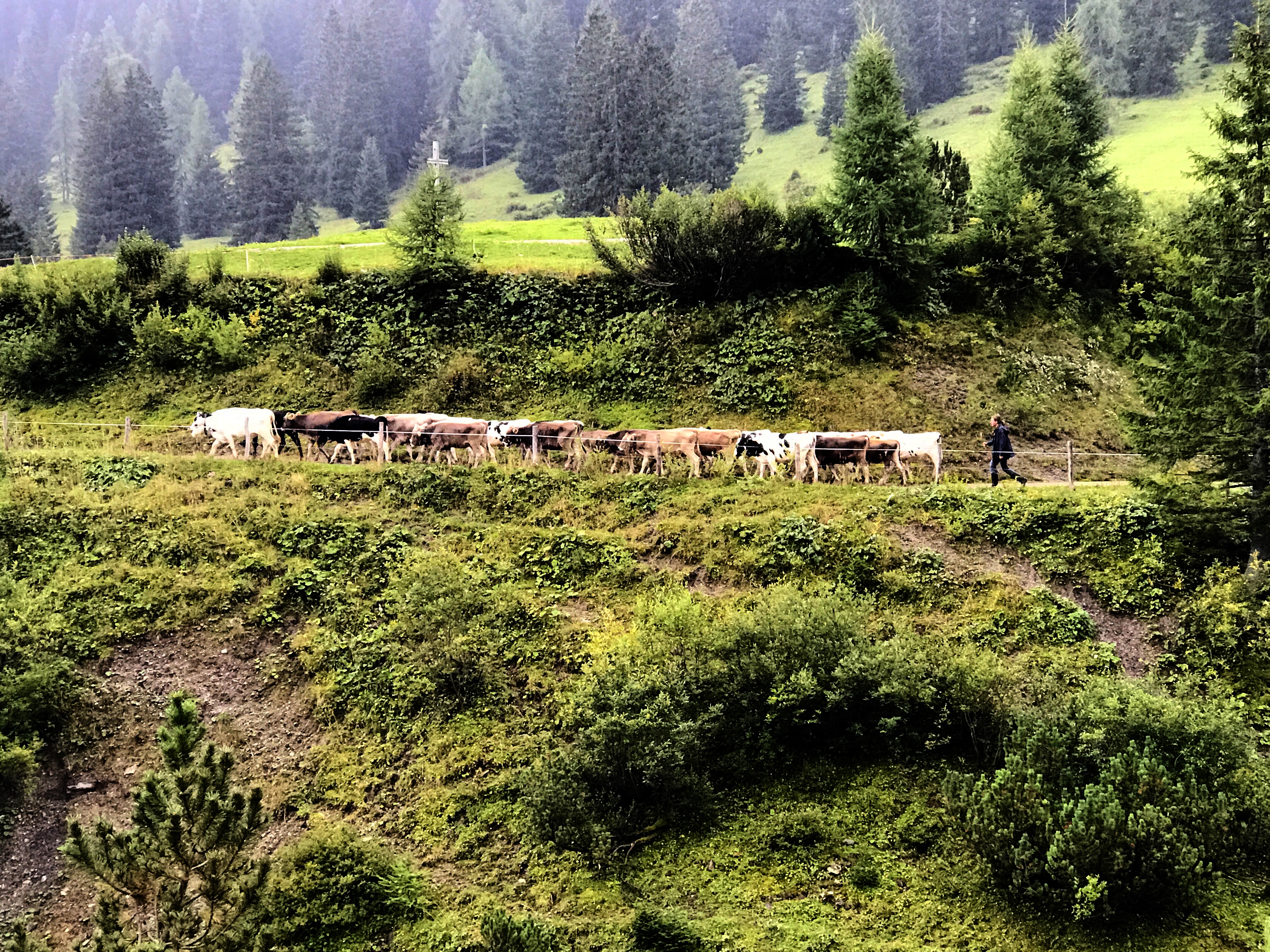 Die leichte und kurze Wanderung mit Kinderwagen zur Alpe Rona auf dem Hochplateau Tschengla ist perfekt für Familien. Wir konnten der Bäuerin bei der Käseherstellung zuschauen und die Kinder hatten darüber hinaus noch viel Spaß mit Tieren – vor allem mit dem Esel!