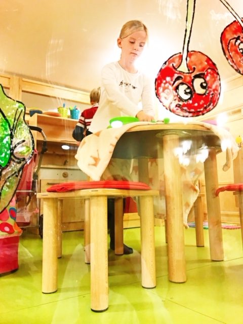 Der Außenbereich ist eingezäunt und teilweise überdacht. Hier gibt es ein Klettergerüst und Sandkasten-Bereich. Die Kinderbetreuung im Kinderland findet jeden Tag von 9.30 Uhr bis 21:30 Uhr für Kinder von 3-14 Jahren statt.