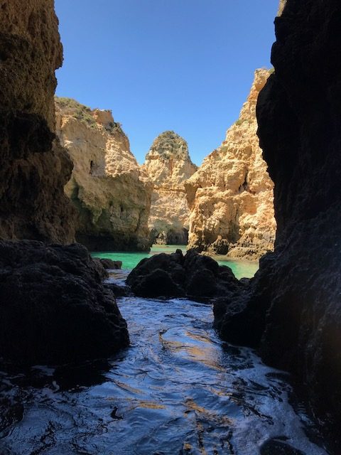 Die Ponte da Piedade sind verwunschene Felsgebilde wie Türme, Tore, Felsnadeln aus rotem Sandstein an der Küste bei Lagos. Die Felsgebilde wurden im Laufe der Zeit von Wind, Wetter und Wellengang geformt. Wir haben einen Bootsausflug mit einem kleineren Motorboot gebucht und sind durch Felstore und in Grotten gefahren. Ihr könnt zwar auch die Küste ablaufen, um manche Felsgebilde zu Fuß besuchen, habt jedoch einen sehenswerteren Blick vom Boot aus. Für uns und die Kinder war die Bootsfahrt ein einzigartiges und faszinierendes Highlight unserer Reise. Auch für Fotomotive – so viele Fotos haben wir noch nie in einer Stunde geschossen!